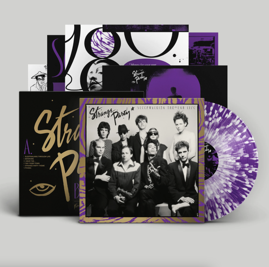 Futurismo proudly present a work of lost musical wonderment; the never before released album Sleepwalking Through Life by New York luminaries Strange Party. In the downtown clubs of New York, 1980, this stylish group of eccentric and talented artists and musicians gathered under the umbrella of musical cohort and downtown legend Klaus Nomi (featured on a track here) to create a multi-sensory latin-infused new wave performance art-pop extravaganza the Soho press once called 'the best party band in New York'. 'Sleepwalking Through Life' is a snapshot of a time in New York when art, music, fashion and clublife where not mutually exclusive entities. Described as Dada disco, Strange Party's allure was not just down the prowess of the skilled musicians, but also the left field aesthetics of their visual themes. Each show would be tailored around a concept, whether that be Mermaids on Heroin or Beatnik Romans, there was profound willingness to turn art into fun through performance rock 'n' roll. Strange Party's unique take on the world was also relayed in the ensemble groups unique membership. Counted among it's alumni was Joey Arias (art-star famed for his performance alongside Bowie and Nomi on SNL, and now praised drag performer), Tony Frere (commercial producer, Kenneth Anger collaborator and jazz singer), George Elliott (composer, formerly of the band Come On), Page Wood (illustrator and Bloomingdales bag designer) plus several other members of severe and individual talents. There was also the operatic new wave icon Klaus Nomi of course, while not in the band, his live band was made up mostly of Strange Party band members. Pulling in from a spectrum of jazz, funk, disco, latino and punk, the bands influence on other artists of the time can certainly be heard. Talking Heads were there. Listen to 'I Hear the...' for example, and you will undoubtedly draw comparisons to 'This Must Be the Place', but that was downtown NY, a hive of creativity and cross pollination and Strange Party are a fine example of exactly that. Their innate blend of musicianship, dynamite vocals, theatrics, style and wit, ensured they were equally well received playing in clubs like Danceteria for Manhattan's scene-makers and intelligentsia as they were playing for the clientele of discerning restaurants. Which is why Sleepwalking Through Life is such a rare gem; a recording over 40 years after the fact just as intriguing and relevant as it surely was then. History may have been raked over several times already, yet here we are, something brand new from the past.